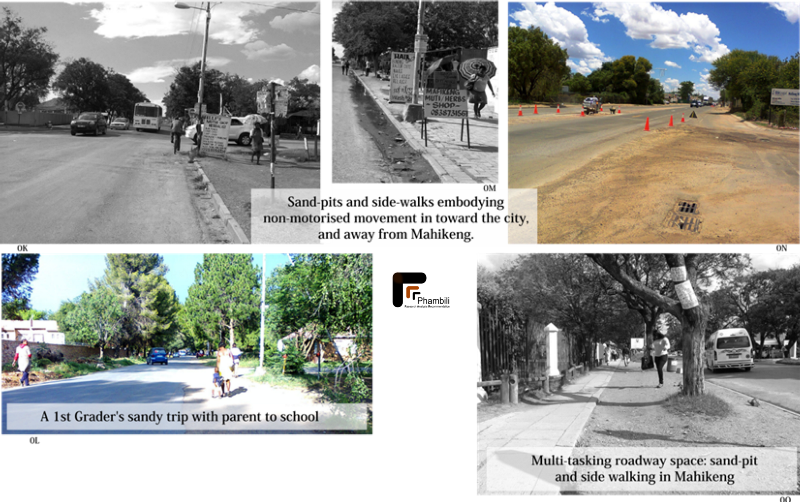 Mahikeng, however, spares non-motorised facility resources for pot-hole filling expenses along drainless motorways. The closest water sucker, in ON, barely catches the puddles as this main arterial to the Ramatlabama border does no justice as the dry mud after a few rainy days suggests. This artery is in close proximity to a shopping complex, with a large pedestrian catchment.