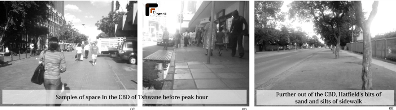 The City of Tshwane is another example of profoundly progressive integrated planning efforts in the form of Bus Rapid Transit, public space and pedestrian zones (i.e. Church Street- 0C). Yet there are those odd moments when poles intrude pedestrian space, side-walks provide evaporating universal access and sewage lingers with the hawkers (0D). Further-out of the city, near the University of Pretoria, we see sand-pits holding hands with straight lines of non-motorised provision — landscaping is certainly not well realized opportunity (0E).Lastly, from loitering around the city center I realized that using a bicycle to get around the 7kms that make up the center is certainly not an option encouraged — let alone provided for. In the city, who’s voices can articulate the actions necessary to expand the fluidity and priority of NMT mobility — the lower income end of the masses, or the young middle-class learning from Europe, Asia and the Americas?
