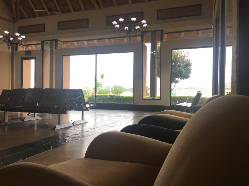 This is more of an operational issue: sidewalks really do something magical at airports. They tell frequent flyers and guests that they were part of the plan. Small things like art work, more natural lighting and pot plants inside just shake the place up a bit. A splash of red, a blast of black some white here and there would take our minds off the raw rocky monotony that is as repetitive as the design of signage. Most passengers would not notice this though, until its different. The other thing worth noting is the silence: all I heard was the mechanical belts chiming, beeps from drones and birds somewhere off in the distance. The VIP Lounge adds a unique feel to the light airport, if it was open to the public it would be put in more detail.