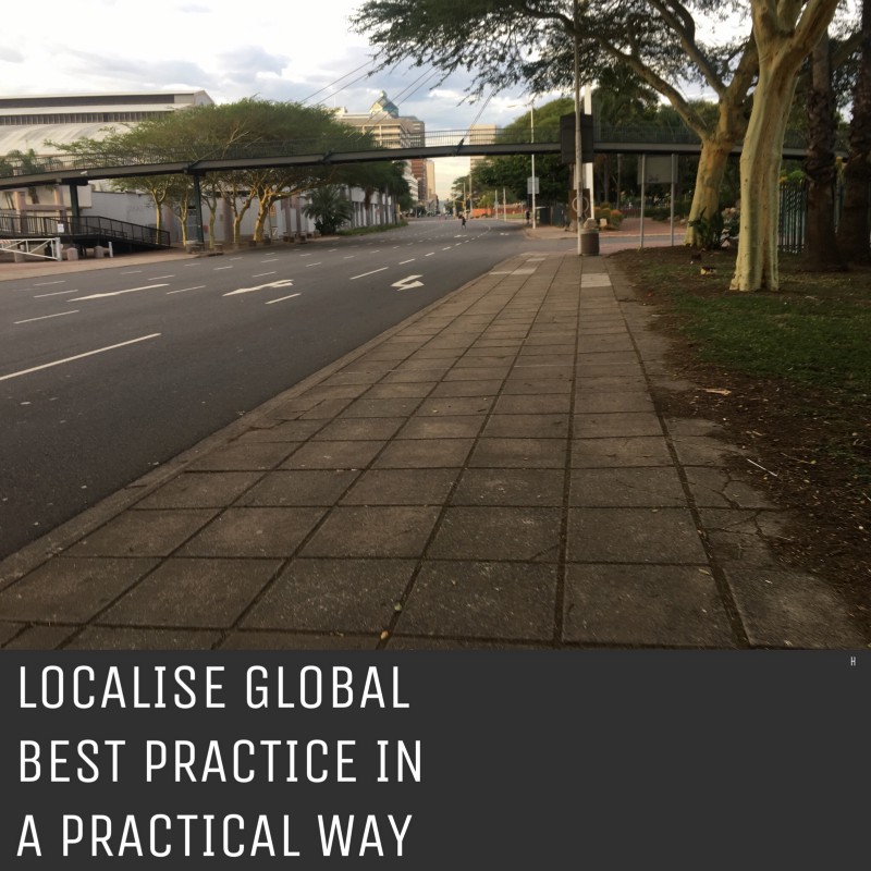 Localising solutions means a lot to the average person because a global picture on a local canvas, bending to corrugation is everything. There are persistently more ideas than there are people in towns, cities and metros. In SA, most of the activism is outsourced. I do not subscribe to municipalities perpetually lacking capacity to execute what defines them: serving the public. Devolving key talents to municipalities is a high impact effort to activate underlying resources, dormant, waiting to be tapped into. Rattling the public sector underbelly is a local act, not of altruism, but of gratitude. One of the most exciting contributions is re-engineering best practice from the global scale to local, practical and realistic actions with tangible results.