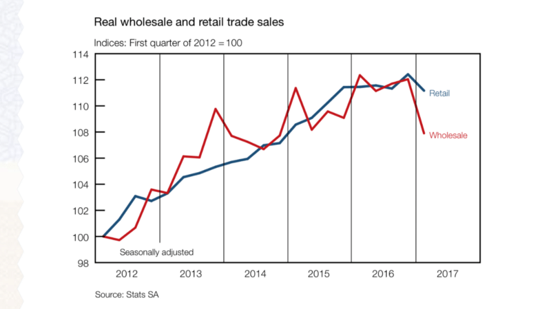 While in the secondary sector, largely manufacturing is contracting (-3.4) in Q1 2017,compared to 0.6% growth in Q1 2016. Tertiary and non-primary sector activity are the key (sudden) sources of contraction -2% and -2.3%, respectively. Such contractions are reinforced by higher inventories and lower sales at wholesale level particularly due to contracting consumer expenditure. In particular, real expenditure for households is contracting across all goods and services — red flagging the secondary and tertiary sector contractions. These are domestic issues, and transport and logistics costs are a crucial link between all sectors and services throughout the domestic production and consumption chain.