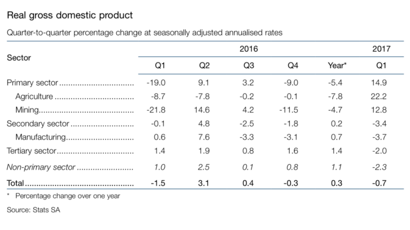 Contractions are sector specific and should be assessed by sector, not on the aggregate. As such more specific interventions can be articulated. Primary sectors, which follow global growth (+), commodity prices (+), domestic extraction (+ in platinum) and generally factor endowment advantages in SA (i.e. significant reserves). Although volatile, the primary sector is a key source of growth in GDP (14.9%).