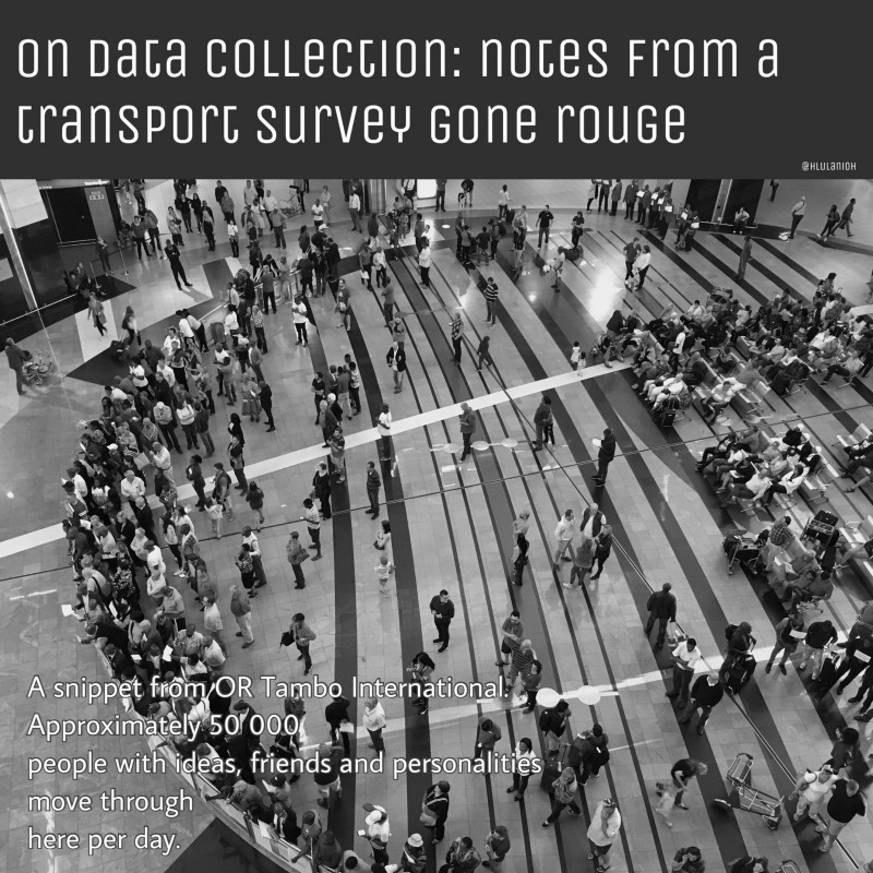 It is important to have some decent contact with respondents in a research project, that way — at least for me — I have the room to reflect in a tactile and practical way. Intermediate data collection has the benefits of scale, but should be supported by a good framework for piloting transport research — or something in between.