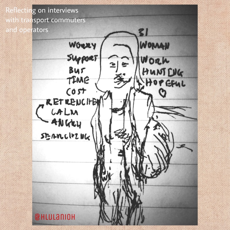 Two assistants were on the ground with me that day. We practiced interviewing, they were okay for both the technical parts and the discussions. One thing I noticed was a man walking toward the bus stop in a black ‘dops’, lunch box at hand. He was probably in his late forties. Skin tight from the harsh sun, eyes were brown and red from years of dust. Deep tones followed every word he chose meticulously. There was a lot to read from his face. Bus services were not pleasant in his view, but that was all there was. All he could afford on a monthly basis. I’d say the discussion was emotionally charged. At some point he kept asking why we were doing this research thing. My answers had to describe the intimate relationships universities should have with communities and global debates.