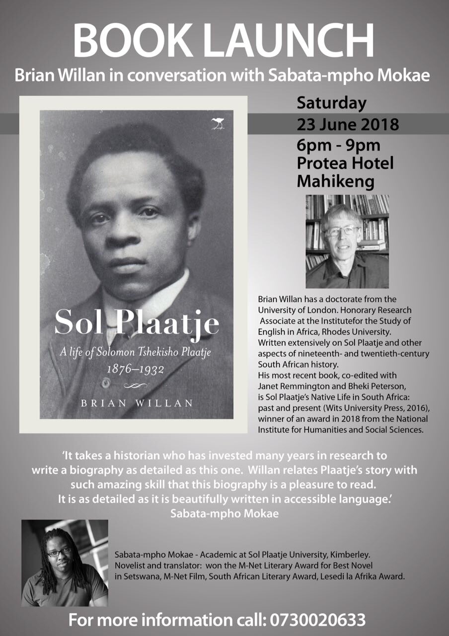 Launching Sol Plaatje: A life of Solomon Thekisho Plaatje 1876-1932 we were fortunate to host Brian Willan and Sabata-mpho Mokae in somewhat of a dialogue in Mahikeng. In the book three chapters account for this now 350 000 inhabitant town, growing unhinged from a grasp of his legacy– and the reciprocal relationship between Sol Plaatje and Mafeking.
