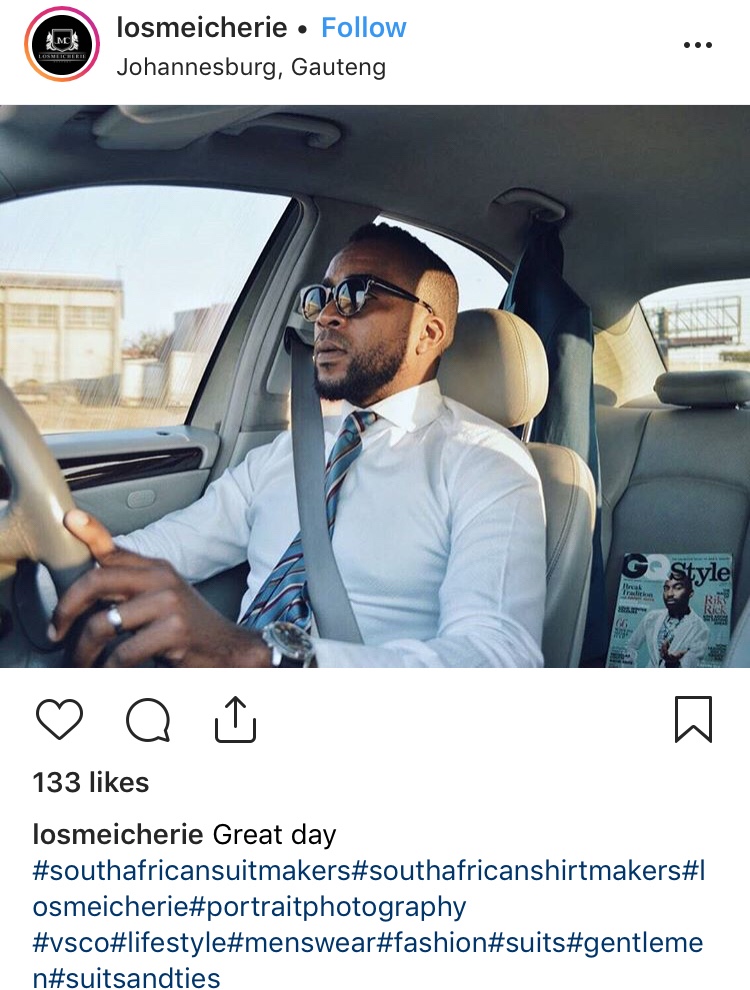 INSTAGRAM opened up the floodgates to incorporate TSAKANE MANGANYE’s visual art talents through PHOTOGRAPHY and his live life attitude through HIKING and BUSINESS. Based in GA-RANKUWA a small regional town outside of PRETORIA which hosts two university campuses; an industrial facility for people with disabilities; and a community based early age development program (YMCA). A neighbourhood dubbed “LOSMEICHERIE” which is short for ‘leave my girl’ resonates with the territorial nature of township life in the 60s to 90s. Fertile ground for talent, the town now hosts a TAILOR who has global footprints in sight. It’s okay to wear a good suit in any occasion, but not all the time. That’s LOSMEICHERIE.
