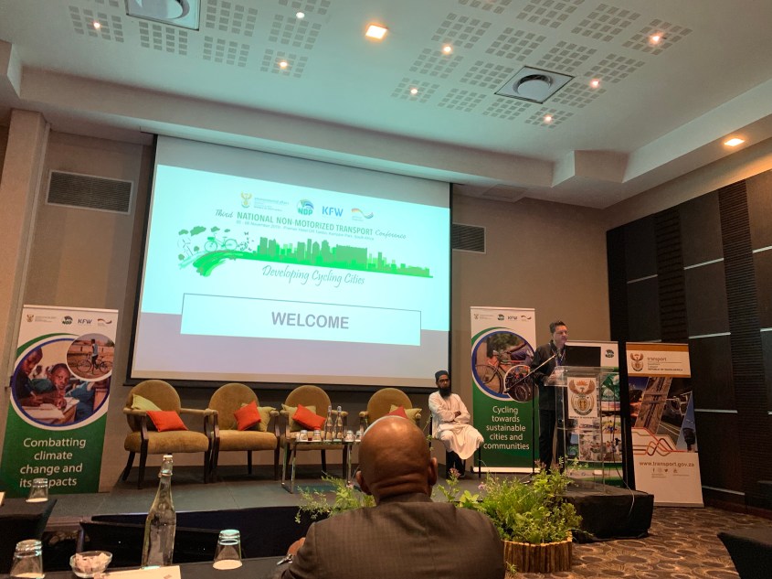 The 3rd Annual Non-Motorised Transport Conference hosted by the Department of Environment Affairs and KFW bank and other partners aimed at opening a conversation between advocacy groups; practitioners who work on methods to enable cycling; and explore the emerging technology, innovations and practices in research and development. In the audience were academics, practitioners from consulting, entrepreneurs, industrialists, organisations and activists.