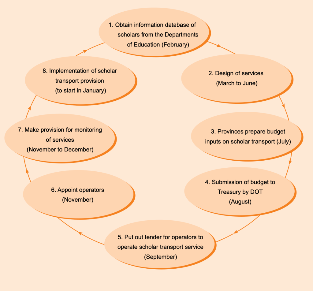 [i] Policy Focus Area 3.3, statement 3.3.1 indicates that learners with disabilities must be among the beneficiaries of learner transport services; Policy Focus Area 3.9, Statement 3.9.1 and 3.9.2. state that scholar transport services must be universal accessible.