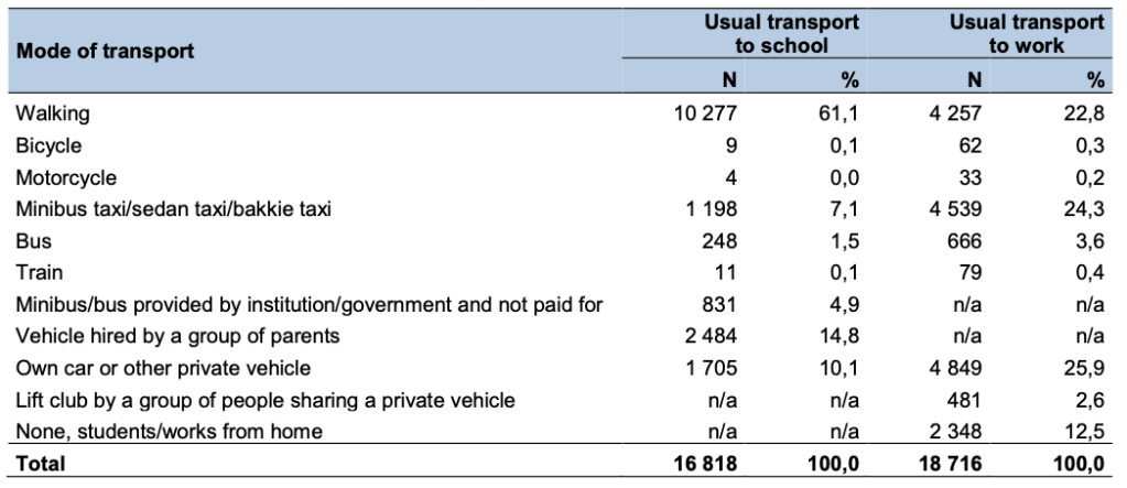 This week, the General Household Survey (N=35535) reinforces the the notion that commuters either travel via private car (25.9%), use minibus taxis (24.3%) or walk (22.8%) to work, shown below. The most recent CPI data, shows how households spend 14% of their income on Minibus Taxi fares, the second largest expense to Fuel (purchased by all vehicle owners). The World Bank reveals the deeply rooted and compounded cost of passenger transport inefficiencies which result in households spending as much as 80% of their income on public passenger transport. This constitutes a crisis in the passenger transport sector, as households are excluded and poverty, inequality and unemployment are reinforced by a lack of affordable, efficient and effective mobility and access.